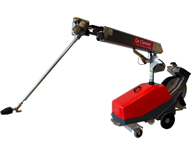 - Mobilitate maxima: GO Cleaner spala cu precizie podeaua, peretii si tavanul datorita articulatiilor speciale, turnului tip “macara”, bratului telescopic, miscarilor posibile cu 7 grade de libertate in toate cele 3 planuri, duzei ce se roteste 360 grade;