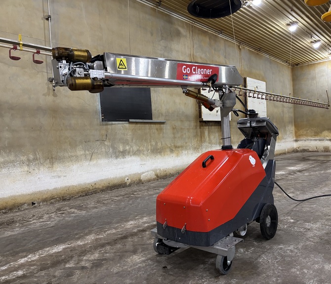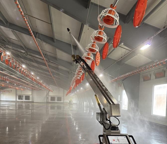 Robotul GO Cleaner a fost adaptat special de catre Envirologic AB pentru a spala cu succes fermele de pasari.